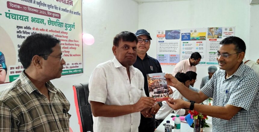 चित्रकूट। जिले की सदर तहसील के अन्तर्गत ग्राम छेछरिहा बुजुर्ग में इतिहासकार,शिक्षक डॉ०संग्राम सिंह के पुत्र स्मृतिशेष सूर्यांश सिंह ने जन्म दिवस की स्मृति में निःशुल्क स्वास्थ्य शिविर का आयोजन किया गया। कार्यक्रम में मुख्य अतिथि के रुप में राजेश यादव उपनिबंधक चित्रकूट, अति विशिष्ट अतिथि चन्द्रभान सिंह, उपजिलाधिकारी,बासी सिद्धार्थनगर, विशिष्ट अतिथि मिथलेश कुमार खंड शिक्षा अधिकारी मानिकपुर, विशिष्ट अतिथि मीरा भारती,सदस्य जिला पंचायत सदस्य, विशिष्ट अतिथि श्री धीरेन्द्र सिंह जितेंद्र सिंह महाविद्यालय बछरन प्रबंधक धीरेन्द्र सिंह मौजूद रहे। शिविर में उपस्थित चिकित्सकों में डॉ० बद्री विशाल सिंह, इमर्जेंसी मेडिकल ऑफिसर, डॉ प्रभात मिश्रा, डॉ० कमल सिंह, डॉ० अमितेश सिंह, डॉ आकांक्षा सिंह, डॉ०