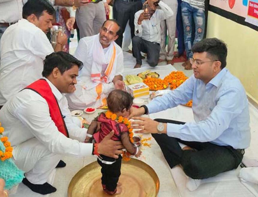 चित्रकूट। शारदीय नवरात्रि के अवसर पर मंगलवार को सदर ब्लॉक के ग्राम पंचायत कसहाई के आंगनबाड़ी केंद्र जिलाधिकारी शिवशरणप्पा जीएन की उपस्थिति में कन्या पूजन एवं कन्या भोज कार्यक्रम का आयोजन किया गया। जिसमें कन्याओं का पूजन कर उन्हें प्रसाद एवं भोजन कराया गया तथा उपहार वितरित किए गए।